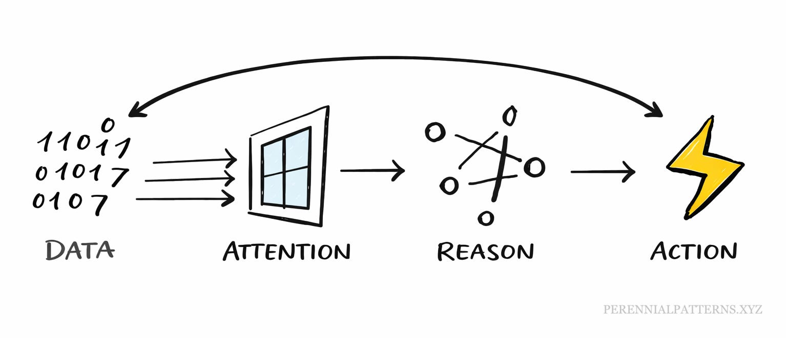 In this particular system, the attention function seems somewhat trivial, and therefore overlooked. But I’d argue that this is an equally important part of an intelligent system and it holds the key to what LLMs unlock in human knowledge work.